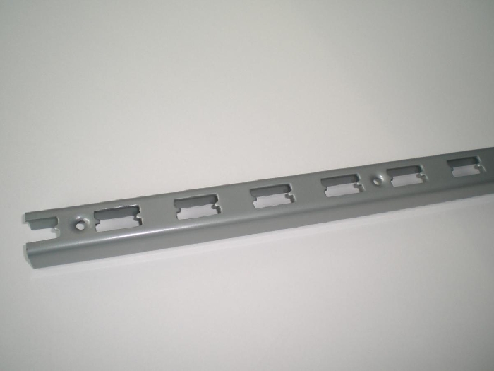 Wandschiene in der Höhe 200 cm, Breite 30 mm und Tiefe 23,5 mm mit einseitiger H-Lochung in der Farbe RAL 7016 anthrazitgrau.